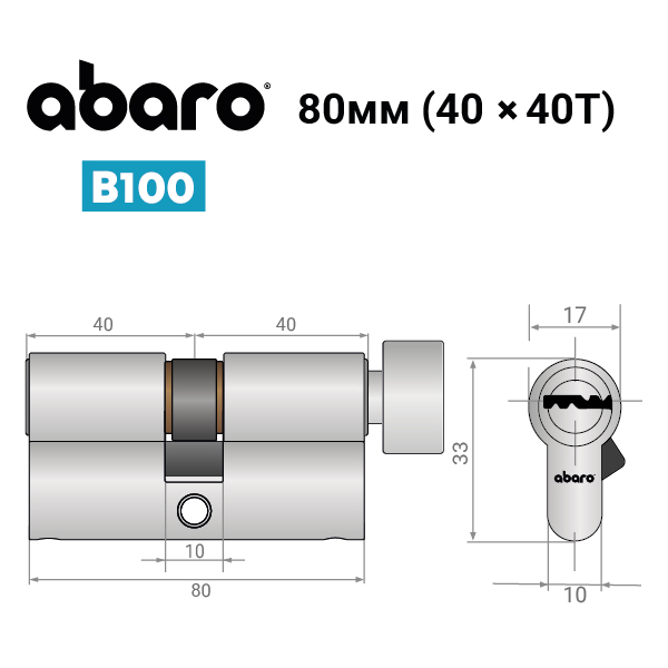 Опис Циліндр ABARO B100 80T (40*40T) Ni нікель сатин 5 ключів