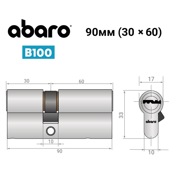 Опис Циліндр ABARO B100 90 (30*60) Ni нікель сатин 5 ключів