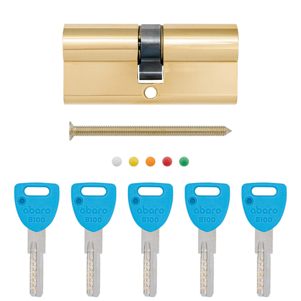 Циліндр ABARO B100 керується ключами профільного (лазерного) типу. Вони виготовлені із латуні з нікельованим покриттям. Ключі мають подовжену шийку леза, що робить можливим їхнє використання з будь-якими протекторами циліндрів.