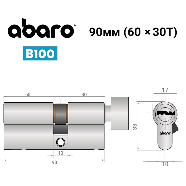 Опис Циліндр ABARO B100 90T (60*30T) Ni нікель сатин 5 ключів
