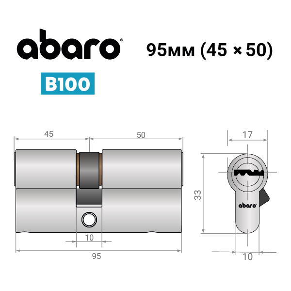 Опис Циліндр ABARO B100 95 (45*50) Ni нікель сатин 5 ключів