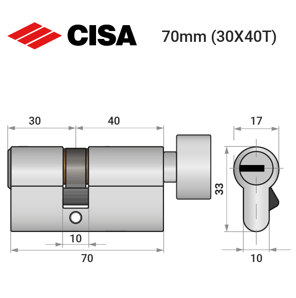 Опис Циліндр CISA ASIX P8 70T (30*40T) нікель матовий 5 ключів