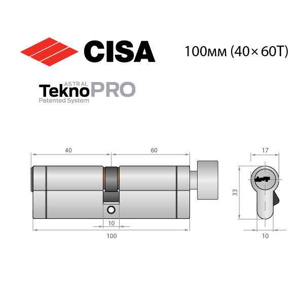 Опис Циліндр CISA Astral Tekno PRO 100T (40*60T) нікель матовий 3 ключі