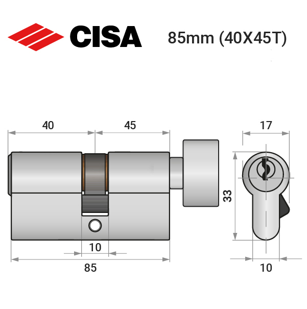Купити циліндр CISA C2000 85T (40*45T) в роздріб і гуртом можна на нашому сайті.