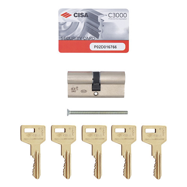 Циліндр CISA C3000 75 (35*40) нікель матовий 5 ключів