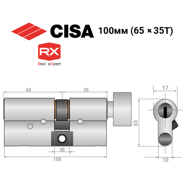 Циліндр CISA RX (модульний) 100T (65*35T) нікель матовий 3 ключі