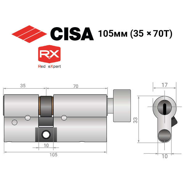 Опис Циліндр CISA RX (модульний) 105T (35*70T) нікель матовий 3 ключі