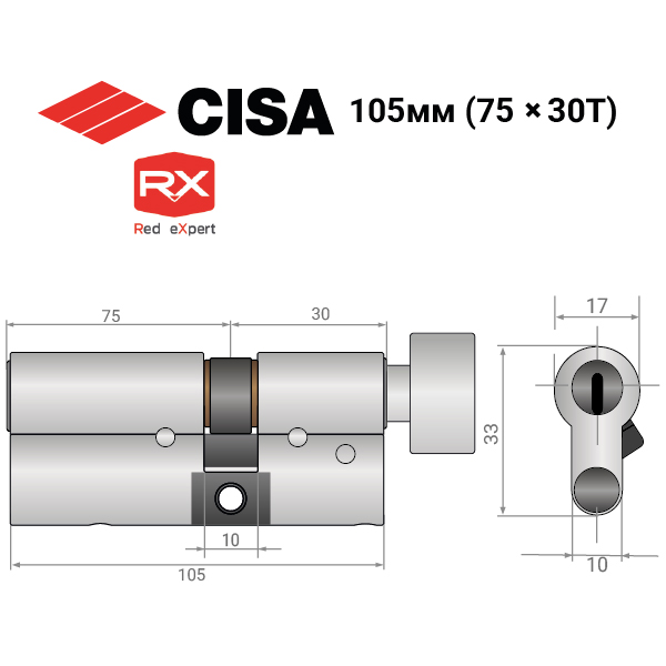 Опис Циліндр CISA RX (модульний) 105T (75*30T) нікель матовий 3 ключі