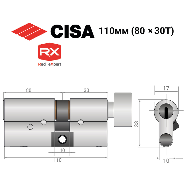 Опис Циліндр CISA RX (модульний) 110T (80*30T) нікель матовий 3 ключі