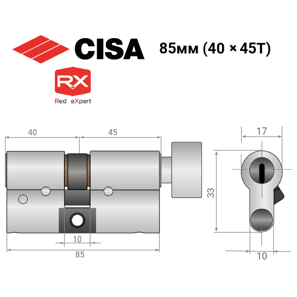 Опис Циліндр CISA RX (модульний) 85T (40*45T) нікель матовий 3 ключі