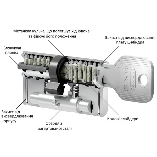 - В корпус циліндра вмонтована спеціальна загартована пластина.