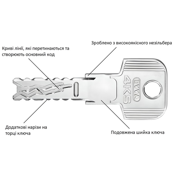 Циліндр отримав свою назву EVVA 4KS якраз за рахунок цих чотирьох кривих.