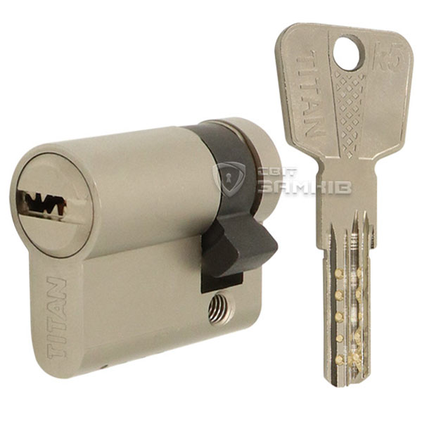 Опис Циліндр половинка TITAN K5 55 (45*10) нікель сатин 3 ключа