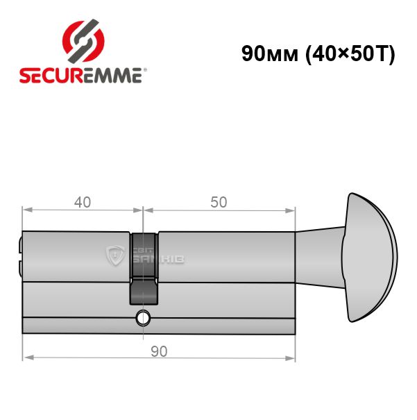 Циліндр SECUREMME K2 90T (40*50T) хром матовий