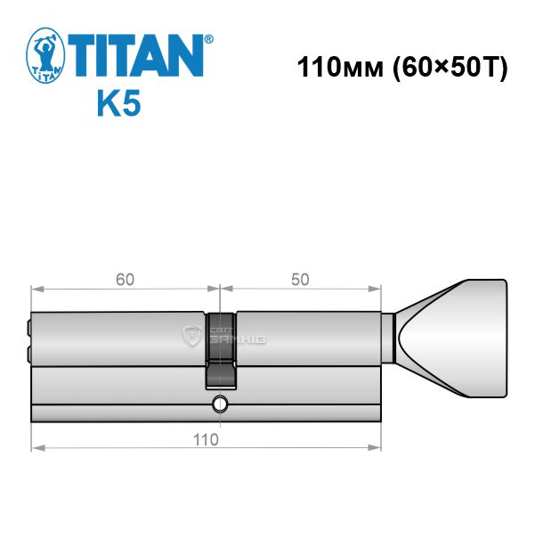 Циліндр TITAN K5 110T (60*50T) нікель сатин
