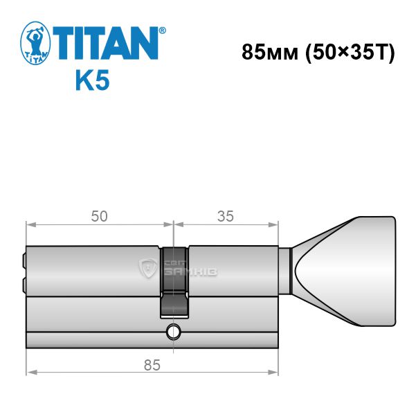 - Циліндр TITAN K5 85T (50*35T) нікель сатин ⭐