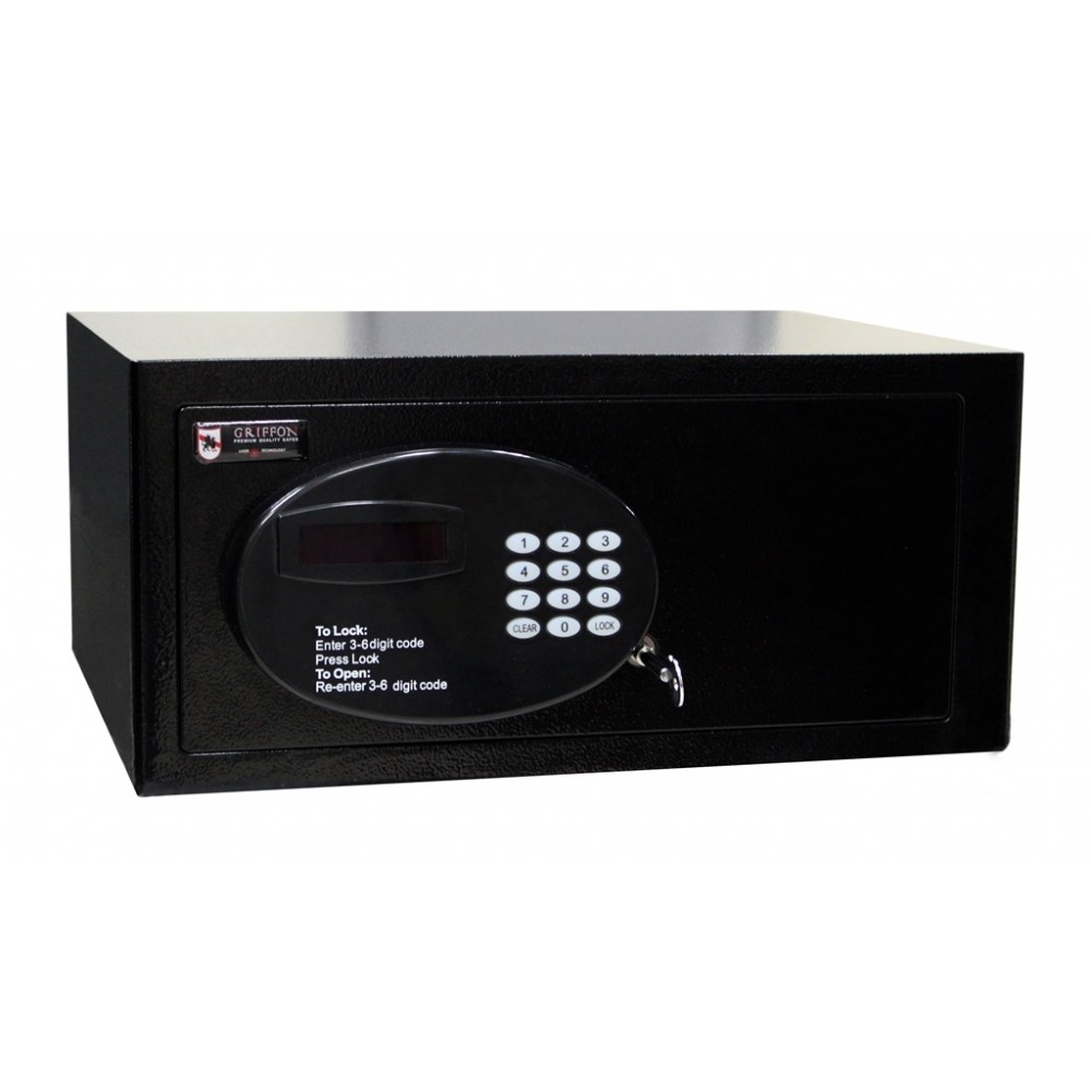 Український виробник ПАРИТЕТ-К є одним із найкращих та найпрогресивніших в сфері проектування та виготовлення сейфів будь-якої категорії. Дана модель GRIFFON SH.20.K.E володіє компактними розмірами і при цьому досить містка для побутових потреб. Її без проблем можна розмістити всередині меблів. Для надійності кріплення передбачені отвори для анкерних болтів. Це дозволить закріпити сейф до підлоги або стіни. Найчастіше використовується для готельних номерів.