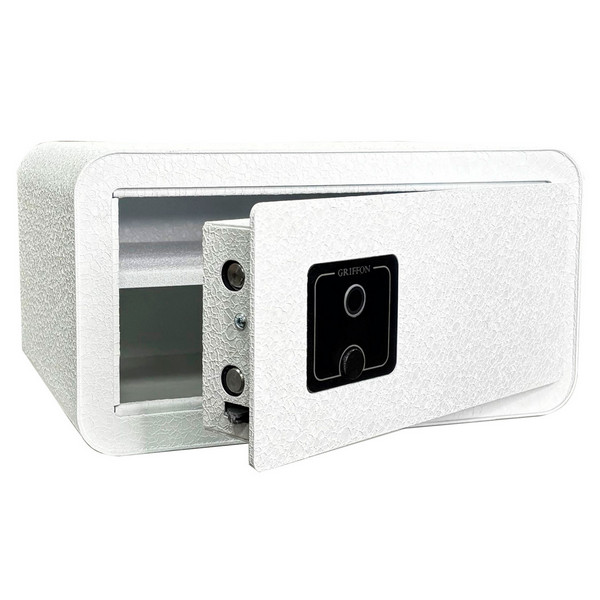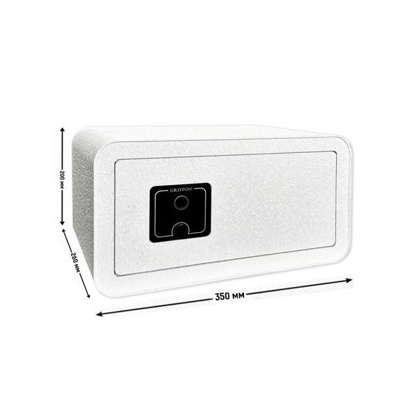 Корпус та двері сейфа виготовлені із металу завтовшки 2 і 4 мм відповідно. Закривається біометричним замком GRIFFON.FP.LIGHT. Для екстрених випадків передбачене механічне відкривання ключем. Замикання здійснюється товстими обертовими ригелями діаметром 25 мм. Вони забезпечать практичний захист від можливості їх перепилювання. Петлі в формі антизрізів мають внутрішнє виконання, тому їх збити абсолютно неможливо. В білому кольорі відмінно доповнить будь-яке сучасне приміщення.