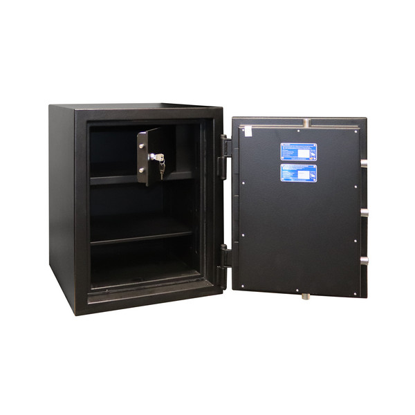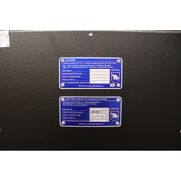 GRIFFON CL II.68 E відноситься до вогнезламостійких схованок. Вона здатна захищати цінності від зламу (ІІ клас по EN 1143-1) і дії вогню (клас LFS 30 P). Це означає, що під час пожежі протягом 30 хвилин температура всередині сейфу не підніметься вище 170°C, чого достатньо для зберігання паперових документів. Для надійності кріплення передбачені отвори для анкерних гвинтів. Це дозволить закріпити його до підлоги та стіни.
