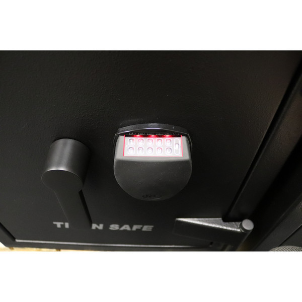 Корпус сейфа заповнений спеціальним вогнестійким керамзит бетоном. Він складається з цементу, керамзиту (гравій, щебінь, глина) та сталевої сітки Ø 6 мм для армування. Проте, він відноситься до легких бетонів, а його маса перевищує інші види в два рази. Матеріал має надвисоку міцність, стійкість та хороші теплоізоляційні властивості. Товщина захисного шару складає 40 мм. Разом із електронним кодовим замком SMARTLOCK (Італія), це створить суттєву перепону і для зловмисника. Він оснащений світлодіодною підсвіткою червоного кольору. Замикання здійснюється ригельною системою тристоронньої дії. Товсті обертові ригеля діаметром 25 мм забезпечать практичний захист від можливості їх перепилювання. Додатково з боку петель є антизрізи. Зручності користування додає ергономічна ручка. В чорному кольорі сейф відмінно доповнить будь-яке сучасне приміщення та не буде привертати зайву увагу.