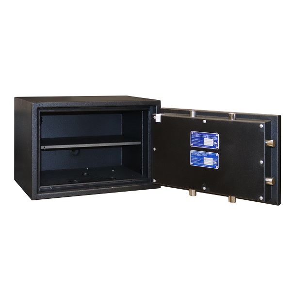 Сейф має тристоронню ригельну систему для замикання, що гарантує надійний захист. Додатково за допомогою антизрізів з боку петель захищає від зловмисників. Шість товстих обертових ригеля діаметром 25 мм забезпечують практичний захист від можливості їх перепилювання. У поєднанні із надійним ключовим замком WITTKOPP (Німеччина) сейф має значущу перевагу перед будь-яким потенційним зловмисником. Отвори під анкерні гвинти (знизу сейфа) дозволять легко встановити та закріпити його до стіни або підлоги.