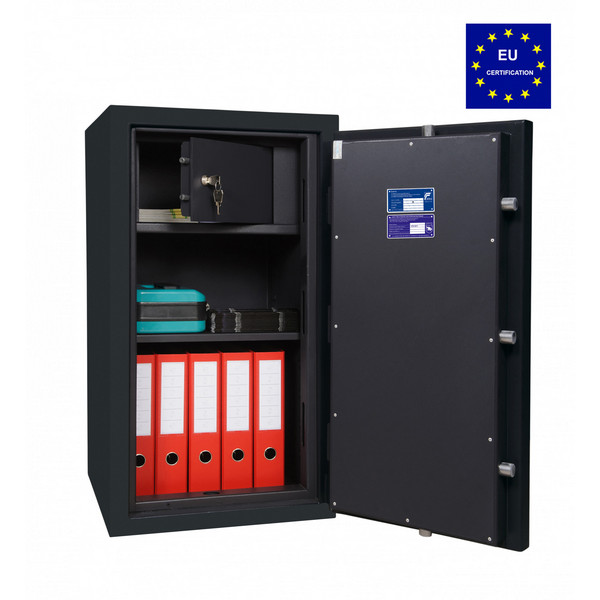 Український виробник ПАРИТЕТ-К є одним із найкращих та найпрогресивніших в сфері проектування та виготовлення сейфів будь-якої категорії. Дана модель GRIFFON CLE.II.90 E відноситься до вогнезламостійких. Вона здатна захищати цінності від зламу (ІІ клас по EN 1143-1) і дії вогню (клас LFS 30 P). Це означає, що під час пожежі протягом 30 хвилин температура всередині сейфу не підніметься вище 170°C, чого достатньо для збереження паперових документів. Для надійності кріплення передбачені отвори для анкерних болтів. Це дозволить закріпити його до підлоги.