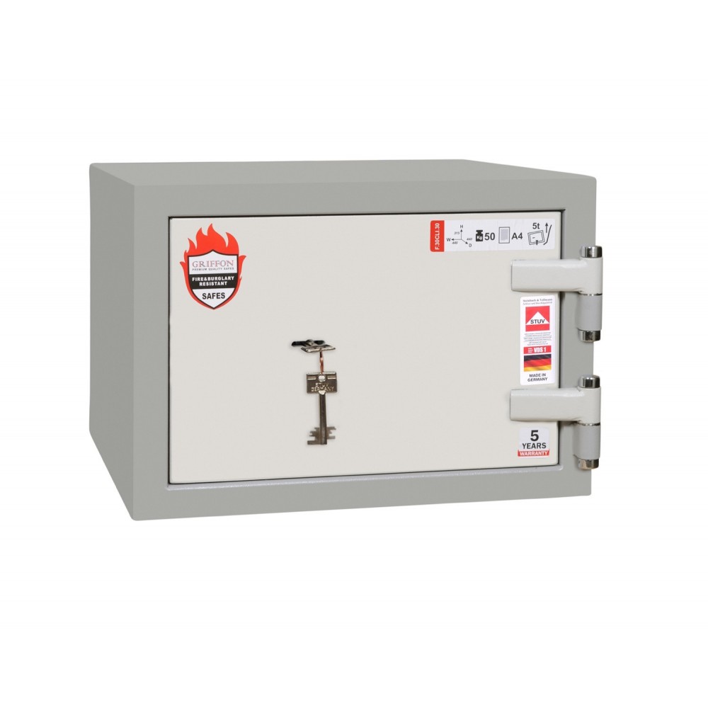 Український виробник ПАРИТЕТ-К є одним із найкращих та найпрогресивніших в сфері проектування та виготовлення сейфів будь-якої категорії. Дана модель GRIFFON F30CL I.30.K відноситься до вогнезламостійких. Вона здатна захищати цінності від зламу (І клас по EN 1143-1) і дії вогню (клас LFS 30 P). Це означає, що під час пожежі протягом 30 хвилин температура всередині сейфу не підніметься вище 170°C, чого достатньо для збереження паперових документів. Відносно компактні розміри дозволяють розташувати сейф практично будь-де в приміщенні. Для надійності кріплення передбачені отвори для анкерних болтів. Це дозволить закріпити його до підлоги.