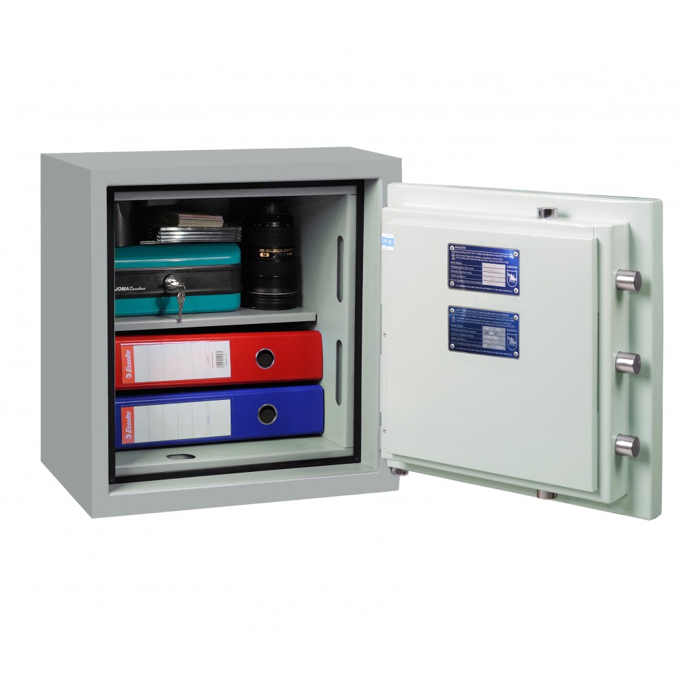 Український виробник ПАРИТЕТ-К є одним із найкращих та найпрогресивніших в сфері проектування та виготовлення сейфів будь-якої категорії. Дана модель GRIFFON F30CL I.50.K відноситься до вогнезламостійких. Вона здатна захищати цінності від зламу (І клас по EN 1143-1) і дії вогню (клас LFS 30 P). Це означає, що під час пожежі протягом 30 хвилин температура всередині сейфу не підніметься вище 170°C, чого достатньо для збереження паперових документів. Відносно невеликі розміри дозволяють розташувати сейф практично будь-де в приміщенні. Для надійності кріплення передбачені отвори для анкерних болтів. Це дозволить закріпити його до підлоги.