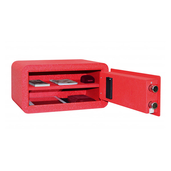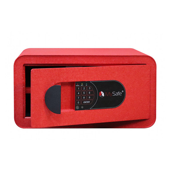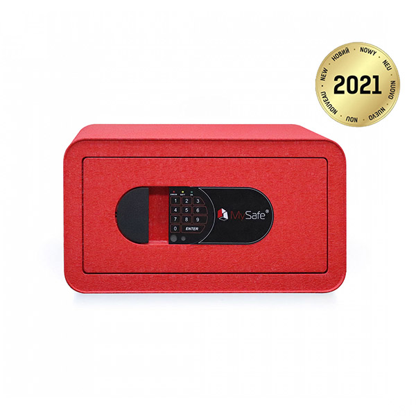 Корпус і двері сейфа виготовлені із металу завтовшки 2 і 4 мм відповідно. Закривається електронним кодовим замком MySafe. Замикання здійснюється товстими обертовими ригелями діаметром 25 мм. Вони забезпечать практичний захист від можливості їх перепилювання. Петлі в формі антизрізів мають внутрішнє виконання, тому їх збити абсолютно неможливо. В червоному кольорі максимально вдало доповнить будь-яке приміщення та стане його окрасою.