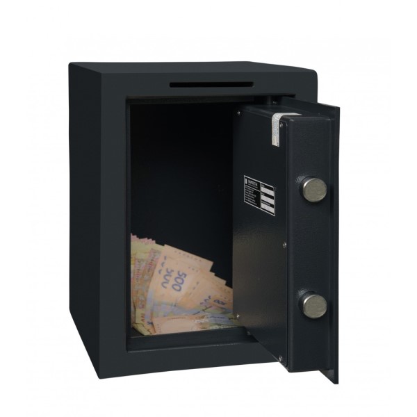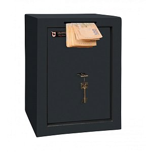 Корпус і двері сейфа виготовлені із металу завтовшки 2 і 5 мм відповідно. Закривається ключовим замком STUV. Замикання здійснюється товстими обертовими ригелями діаметром 25 мм. Вони забезпечать практичний захист від можливості їх перепилювання. В антрацитово-сірому кольорі відмінно доповнить будь-яке сучасне приміщення.