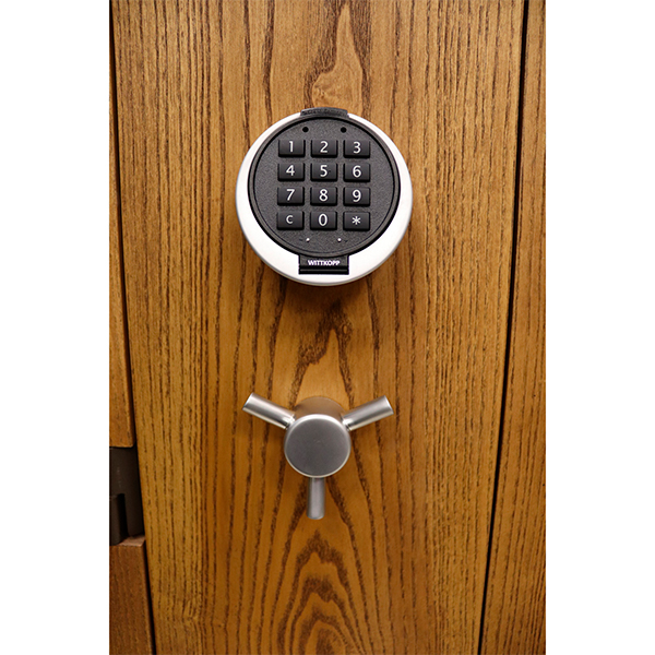 Такий тип відкривання сейфу є достатньо надійним. Для того, щоб його відчинити потрібно правильно ввести кодову комбінацію за допомогою прокручування спеціальної круглої ручки. Подібні механічні кодові замки не вимагають особливого догляду, та є надійними у використанні.