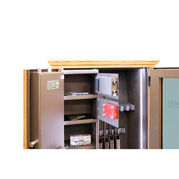 Внутрішній об'єм сейфа має розміри: 1463 мм у висоту, 663 мм в ширину та 303 мм у глибину. Унікальною рисою сейфа є його вишуканий дорогоцінний дизайн, зовні оздоблений деревом (матеріал - ясен, колір - натуральне дерево, покриття - масло-віск), а внутрішнє оформлення – велюр та LED – підсвітка. У дверцятах вбудоване броньоване скло з товщиною 25 мм, що дозволяє проводити огляд зброї всередині без їх відчинення. Усередині присутній ложемент для зброї з оптичним обладнанням, який можна легко переміщувати. Також є два окремі касові відділи (трейзери) зверху, придатні для зберігання патронів та грошей. Один з яких з ключовим замком, інший – електронний кодовий замок з аварійним ключем. Та 4 полиці для розміщення додаткових речей.