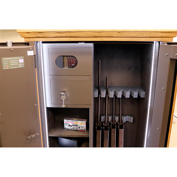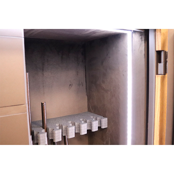 GD.700.E.EM WOOD VENEER – це модель яка призначена для зберігання будь-якої зброї з максимальною висотою 1450 мм, відзначаючись як збройовий зламостійкий сейф. Має сертифікацію 1 класу опору зламу за стандартом EN 1143-1 в Україні. Задачею цього сейфу є безпечне та ефективне зберігання значної кількості зброї з максимальною висотою 1460 мм. Його великі габарити варто враховувати при розміщенні у приміщенні, і для надійного закріплення передбачені отвори для анкерних болтів, що дозволить надійно закріпити його до підлоги.