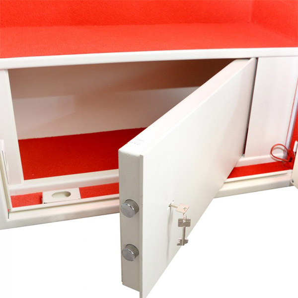 Корпус і двері сейфа виготовлені із металу. Товщина захисного шару стінок складає 20 мм. Сталеві леговані пластини захистять від висвердлювання і вибивання замків і ригелів. Особливістю цієї моделі є антизламна конструкція “зачіп”. Завдяки їй у зловмисників не буде можливості відкрити двері гострим предметом або викруткою. Разом із електронним кодовим замком M-LOCKS це створить суттєву перепону для зловмисників. Замикання здійснюється ригельною системою. Товсті обертові ригеля діаметром 25 мм забезпечать практичний захист від можливості їх перепилювання. В кремовому кольорі сейф відмінно доповнить будь-яке сучасне приміщення та не буде виділятись.