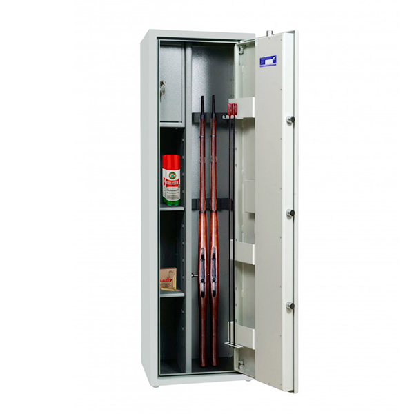 Внутрішній простір має розміри: 1394 мм по висоті, 414 мм по ширині і 293 мм по глибині. Він включає пересувний ложемент під зброю з оптикою і зйомний магнітний ложемент, що встановлюється на будь-яку зручну висоту. Є 3 полиці. Їх можна легко зняти, якщо буде необхідність зберігати об'ємні предмети. Крім того, на дверях присутні зйомні навісні елементи, що переставляються: кишені для магазинів під патрони і засоби по догляду за зброєю, тримачі для шомполів (2-4 од.), гачки. Додатково в цій моделі є касовий відділ (трейзер), який можна використовувати для зберігання патронів. Він закривається на ключ.