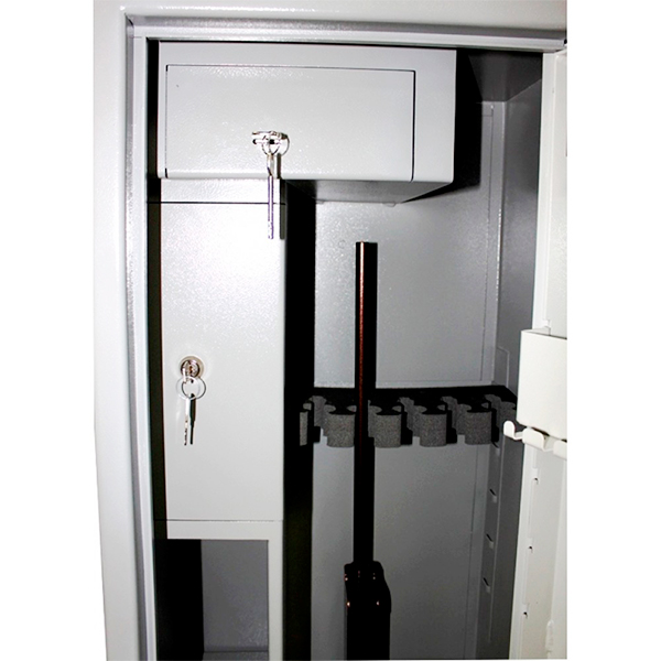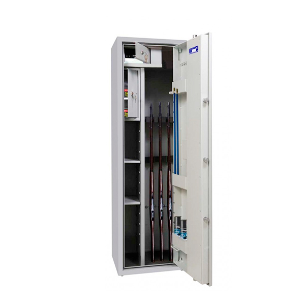 Внутрішній простір має розміри: 1494 мм по висоті, 444 мм по ширині і 293 мм по глибині. Він включає пересувний ложемент під зброю з оптикою і зйомний магнітний ложемент, що встановлюється на будь-яку зручну висоту. Є 3 полиці. Їх можна легко зняти, якщо буде необхідність зберігати об'ємні предмети. Крім того, на дверях присутні зйомні навісні елементи, що переставляються: кишені для магазинів під патрони і засоби по догляду за зброєю, тримачі для шомполів (2-4 од.), гачки. Додатково в цій моделі є 2 окремих касових відділи (трейзер), які можна використовувати для зберігання патронів. Вони закриваються на ключ.