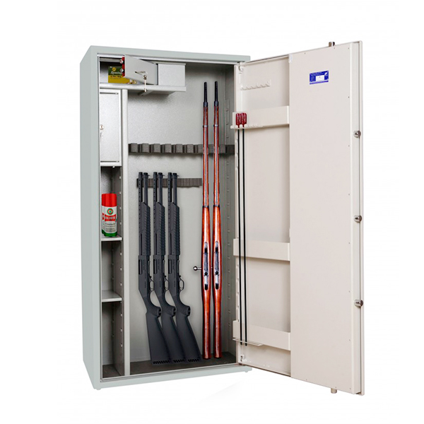 Внутрішній простір має розміри: 1494 мм по висоті, 644 мм по ширині і 293 мм по глибині. Він включає пересувний ложемент під зброю з оптикою і зйомний магнітний ложемент, що встановлюється на будь-яку зручну висоту. Є 3 полиці. Їх можна легко зняти, якщо буде необхідність зберігати об'ємні предмети. Крім того, на дверях присутні зйомні навісні елементи, що переставляються: кишені для магазинів під патрони і засоби по догляду за зброєю, тримачі для шомполів (2-4 од.), гачки. Додатково в цій моделі є 2 окремих касових відділи (трейзер), які можна використовувати для зберігання патронів. Вони закриваються на ключ.