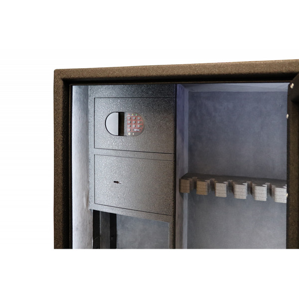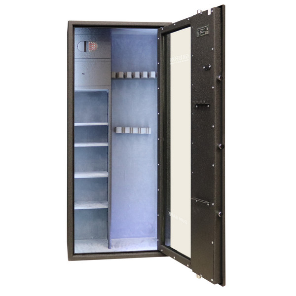 Двері обладнані зйомними навісними елементами, що переставляються: кишені для магазинів під патрони і засоби по догляду за зброєю, тримач під шомполи, гачки. Присутні два окремих касових відділи (трейзери), які можна використовувати для зберігання патронів. Вони мають окремі замки різних типів: верхній електронний, нижній - ключовий.
