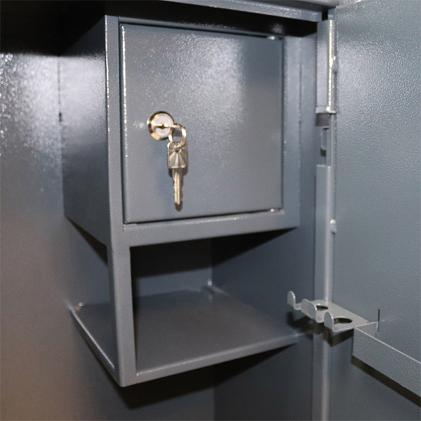 Внутрішній простір має розміри: 1398 мм по висоті, 338 мм по ширині і 239 мм по глибині. У верхній частині є окремий касовий відділ (трейзер), який можна використовувати для зберігання патронів. Він закривається на ключ. Нижче є зйомна полиця для зберігання не габаритних речей. Також на дверях присутні кишені для розміщення засобів догляду за зброєю або магазинів, тримачі та фіксатор під два шомполи, планка для навіски. Все це можна легко зняти за потреби.
