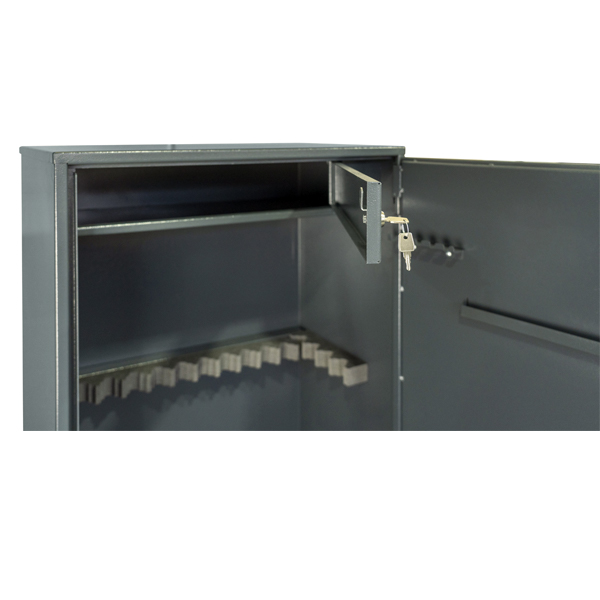 Внутрішній простір має розміри: 1497 мм по висоті, 694 мм по ширині і 289 мм по глибині. Він включає пересувний магнітний ложемент під зброю. Сейф обладнаний окремим касовим відділом (трейзером), який можна зачинити на ключ. Його використовують для зберігання патронів.