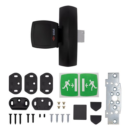 CISA 59061.10 призначена для встановлення на скляні, сталеві, алюмінієві, металопластикові та дерев’яні конструкції евакуаційних виходів. Підходить для полотен вагою до 400 кг, висотою до 3,57 м і шириною до 1,32 м. Сумісний з одно- та двостулковими варіантами. За необхідності може застосовуватися і для протипожежних полотен.