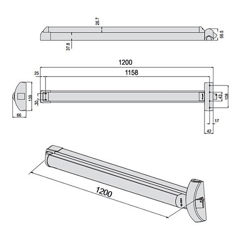 Дана антипаніка призначена для встановлення на скляні, сталеві, алюмінієві, металопластикові та дерев’яні конструкції евакуаційних виходів. Підходить для полотен вагою до 400 кг, висотою до 3,57 м і шириною до 1,6 м. Сумісна з одно- та двостулковими варіантами. За необхідності може застосовуватися і для протипожежних полотен.