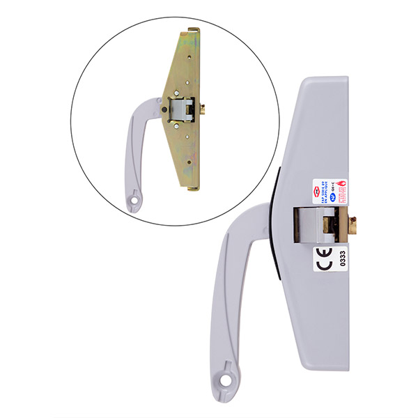 - Встановлюється в металевих, дерев’яних та профільних дверях евакуаційних виходів.