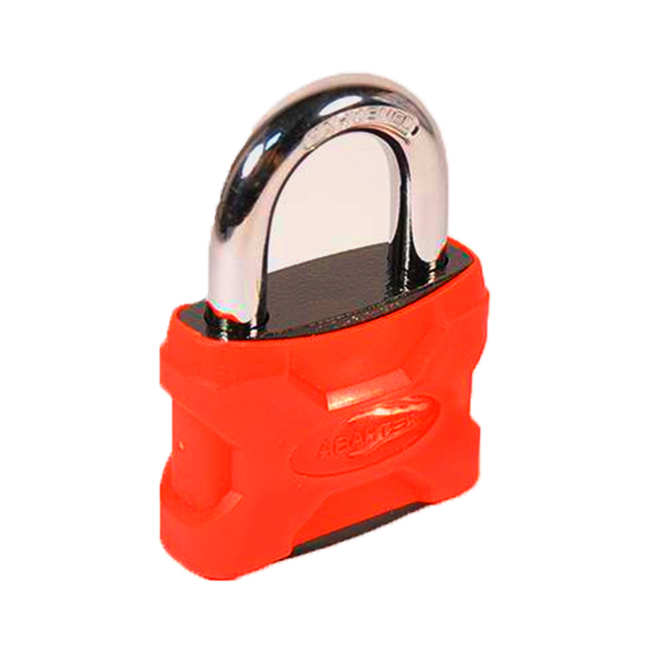 Навісний замок українського виробництва АВАНТЕК T 50 призначений для використання і на вулиці, і в приміщенні. Основною його фішкою є один механізм секретності із латуні, що дозволяє замовити будь-яку кількість таких замків, які будуть відкриватись одним ключем. Сталевий корпус поміщений в пластиковий чохол яскравого кольору. Це захищає від несприятливих погодних умов. Також завдяки ньому замок не подряпає двері, автомобіль або ворота. Має функцію автоматичного замикання шляхом натискання на дужку замка.