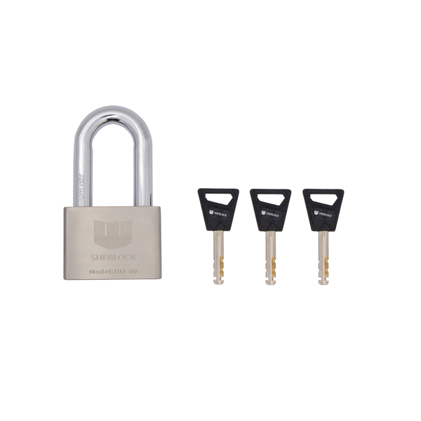 SHERLOCK 102-60 — чудовий варіант навісного замка для вуличного використання. Литий корпус виготовлений з нержавіючої сталі, тому стійкий до механічних пошкоджень та негоди.