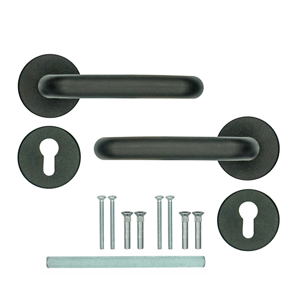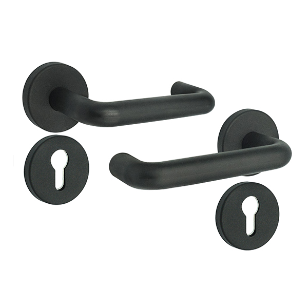Конструктивно дана модель складається з ручок та накладок на серцевину з двох сторін. Дизайн ручок поєднує в собі строгу естетику та продуману ергономіку. Плавна, заокруглена форма забезпечує комфортний та інтуїтивно зрозумілий хват, що є критично важливим для швидкої евакуації людей в екстрених умовах, навіть за умов обмеженої видимості. В трендовому чорному матовому кольорі чудово підходитимуть до дверей темного відтінку або як акцентний елемент фурнітури до світлих полотен.