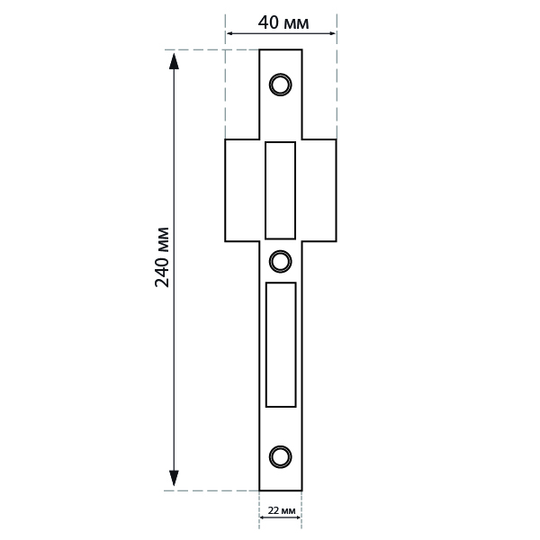 Зворотня планка CISA 06157 призначена для врізних замків CISA серії 44661, 44671, 44820, 44830 SS. Підходить для правих та лівих дверей.