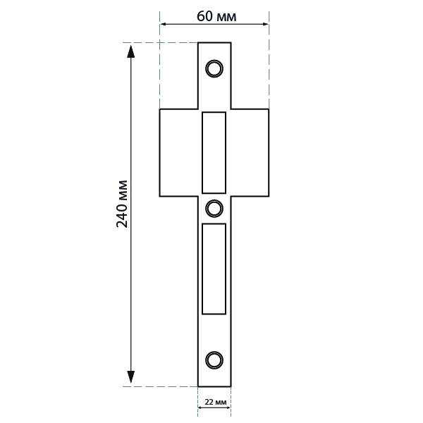 Зворотня планка CISA 06157 призначена для врізних замків CISA серії 44661, 44671, 44820, 44830 SS. Підходить для правих та лівих дверей.