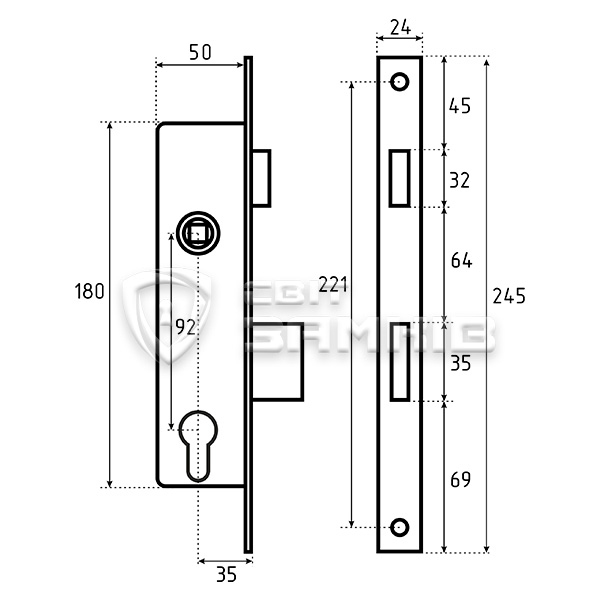 Механізм замка BKS GU (BS35*92, 24мм) заскочка