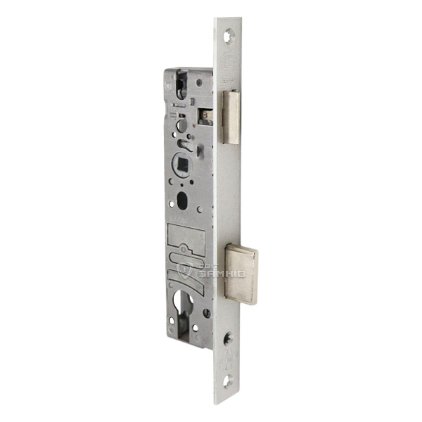 Компанія BKS - німецька якість, перевірена роками. Особливість даного замка – широка торцева планка, 24 мм, тому він встановлюється на двері з алюмінієвого профілю. Вузький корпус врізається в полотно і непомітний зовні. Встановлюється як на ліві так і на праві двері. Язичок замка керується нажимною ручкою, яка підбирається окремо.